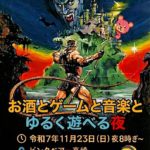 明日、休日の人も、 仕事帰りの人もふらっと。 音楽を聴きながら、玉ーには お酒やノンアルを片手に、 昔懐かしいTVゲームでゆる~く盛り上がる夜。 “ちょうどいい気分で楽しめる場所”を 一緒につくりませんか? 〇日時:令和7年11月23日(日) 夜9時すぎ~12時まで 〇場所:PinkBear高崎さん(通常料金のみ) 〇内容: ・昔懐かしいTVゲームいろいろ ・ゆるい音楽 ※ DJちゃんかな and[続きを読む]